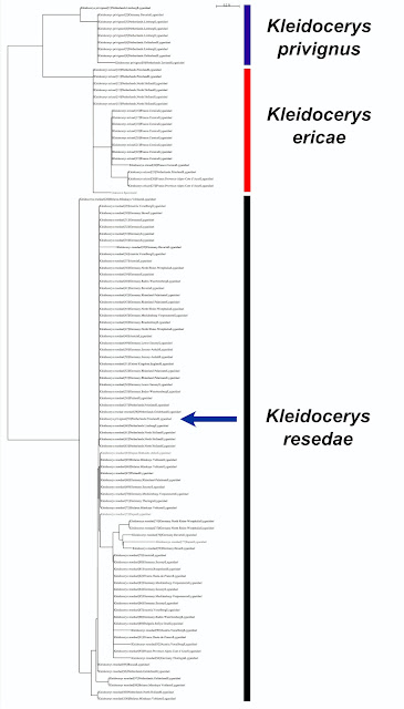 So what does it mean for me? That I probably need to keep looking for K. ericae, although it is possible that it may not occur in VC55. I've been told that K. resedae can occur anywhere, but K. ericae is only found on Erica species (and not on Calluna), that that may help to target the search. It also means that I should probably look for K. privignus - time to target the Alders this year.